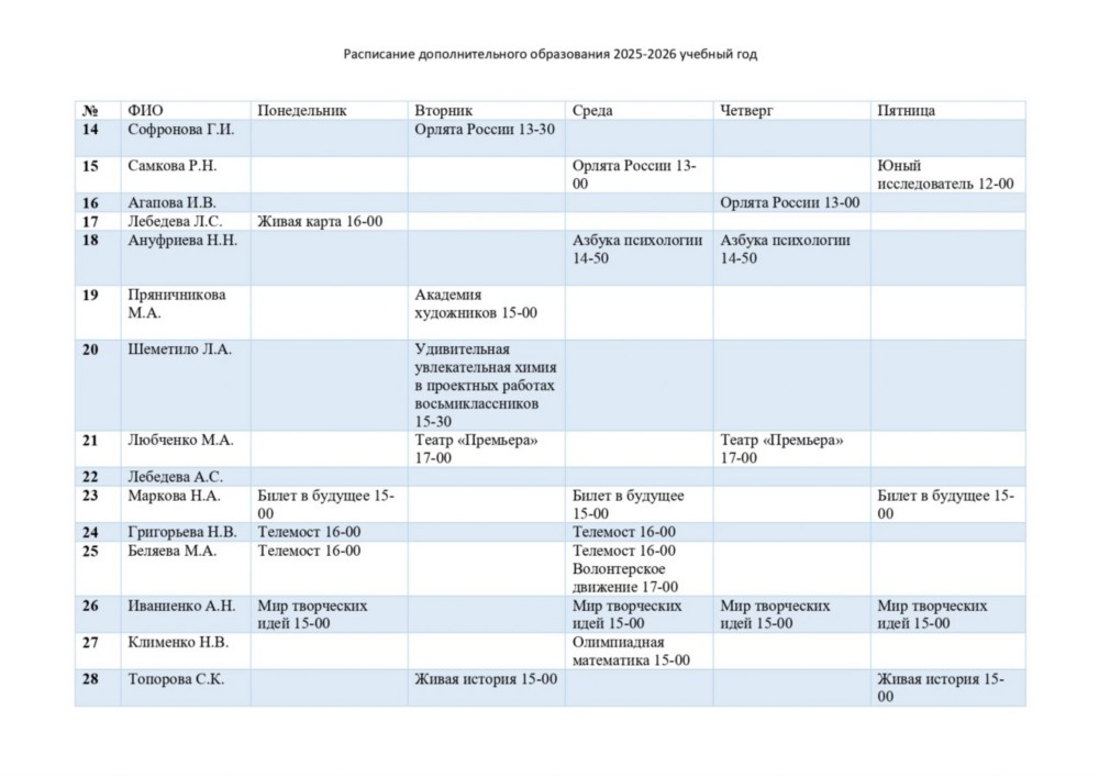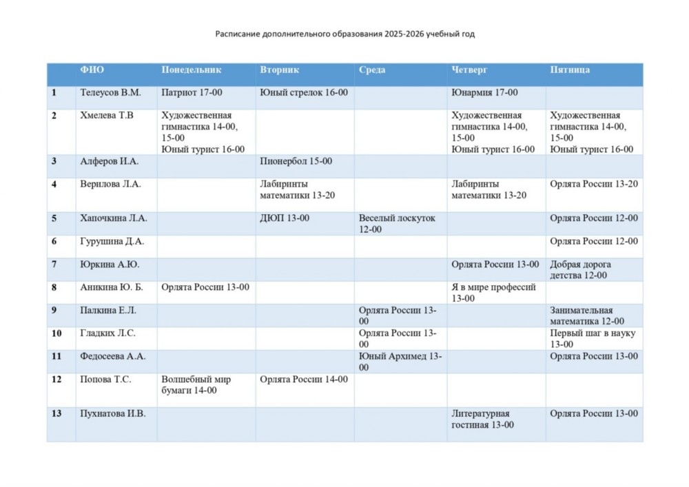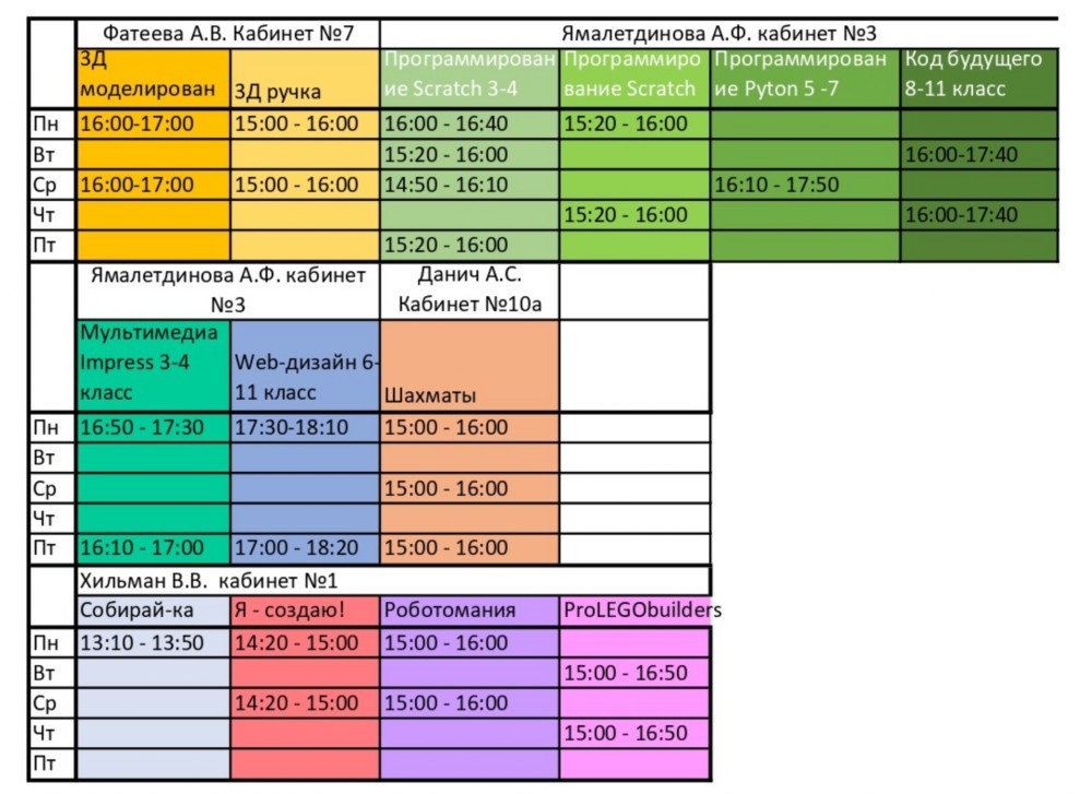 Расписание спортивных секций
